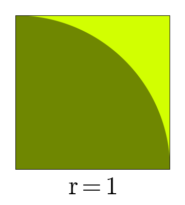 Say we don't have access to all other approaches of approximating . Imagine a unit square with sides of length , and a quadrant (one-fourth of a circle) with radius inside it.